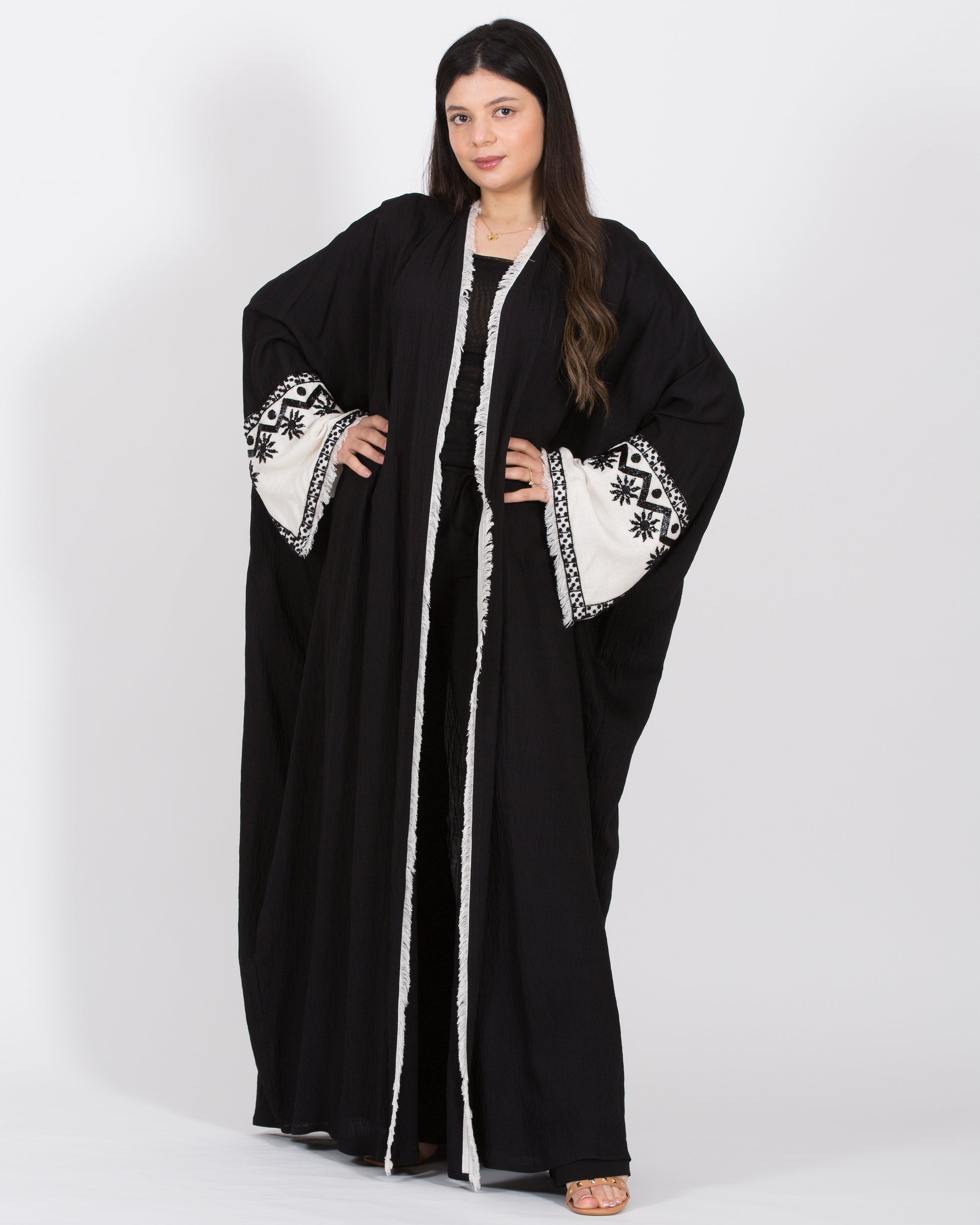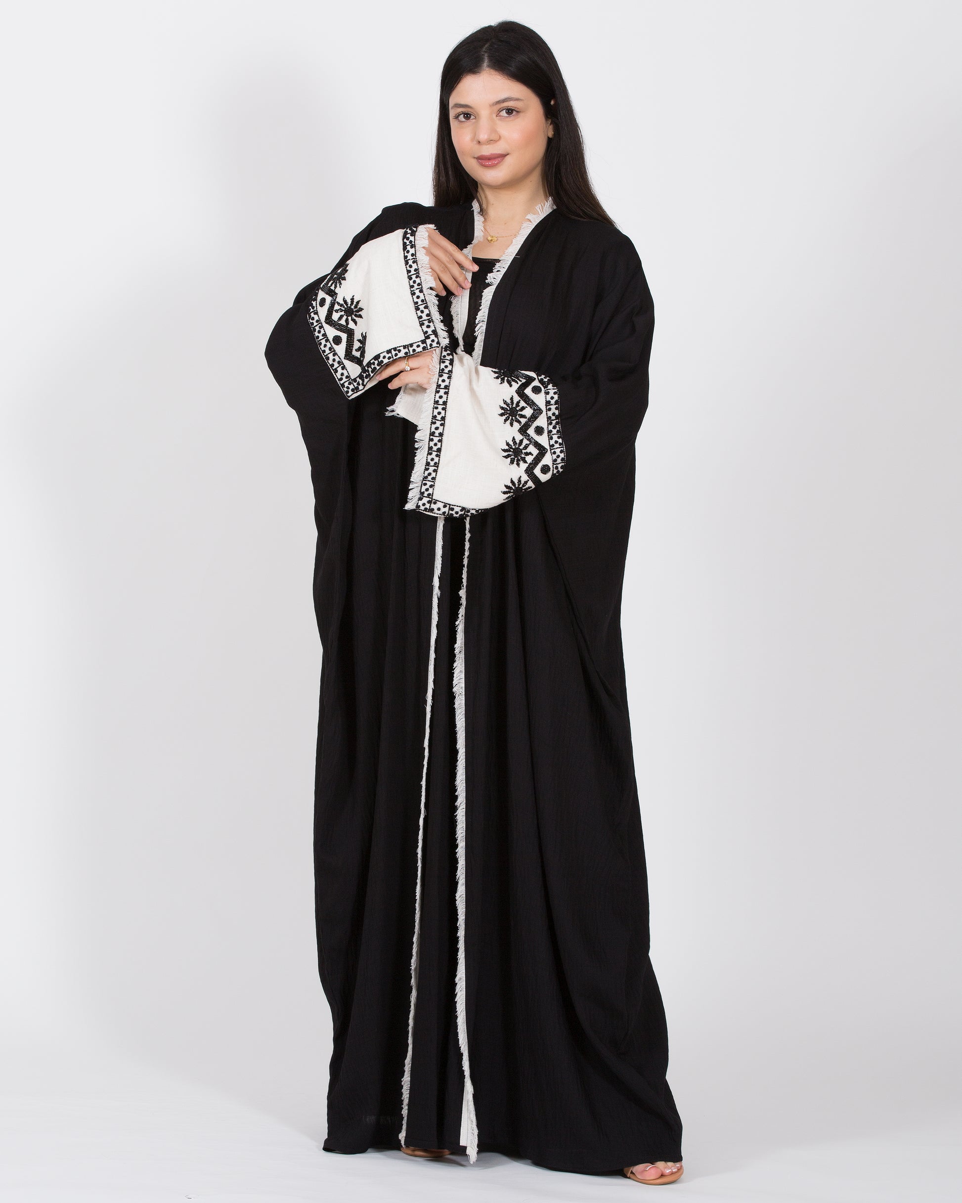 Black abaya with white sleeves