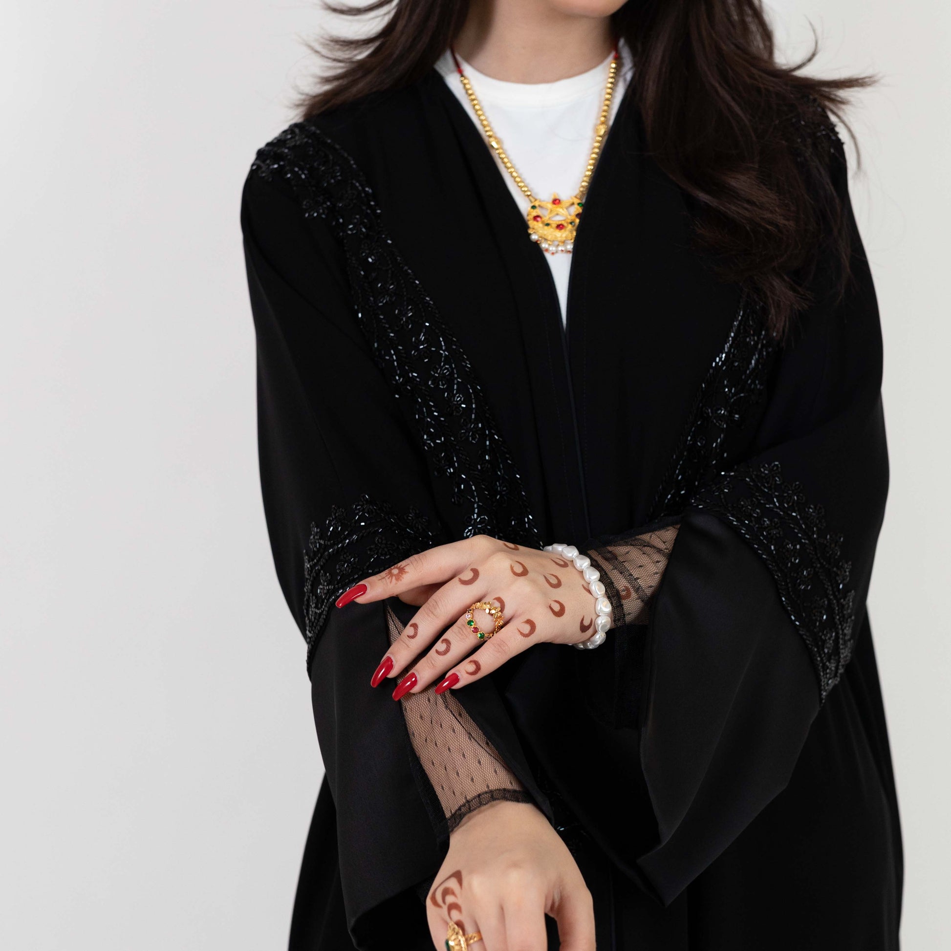 Black abaya with Dantel sleeves is a true testament to refined taste and impeccable style. Its black fabric exudes elegance, while the intricate Dantel lace sleeves add a touch of delicacy and grace. This abaya is sure to make a lasting impression, leaving admirers in awe of its timeless beauty.