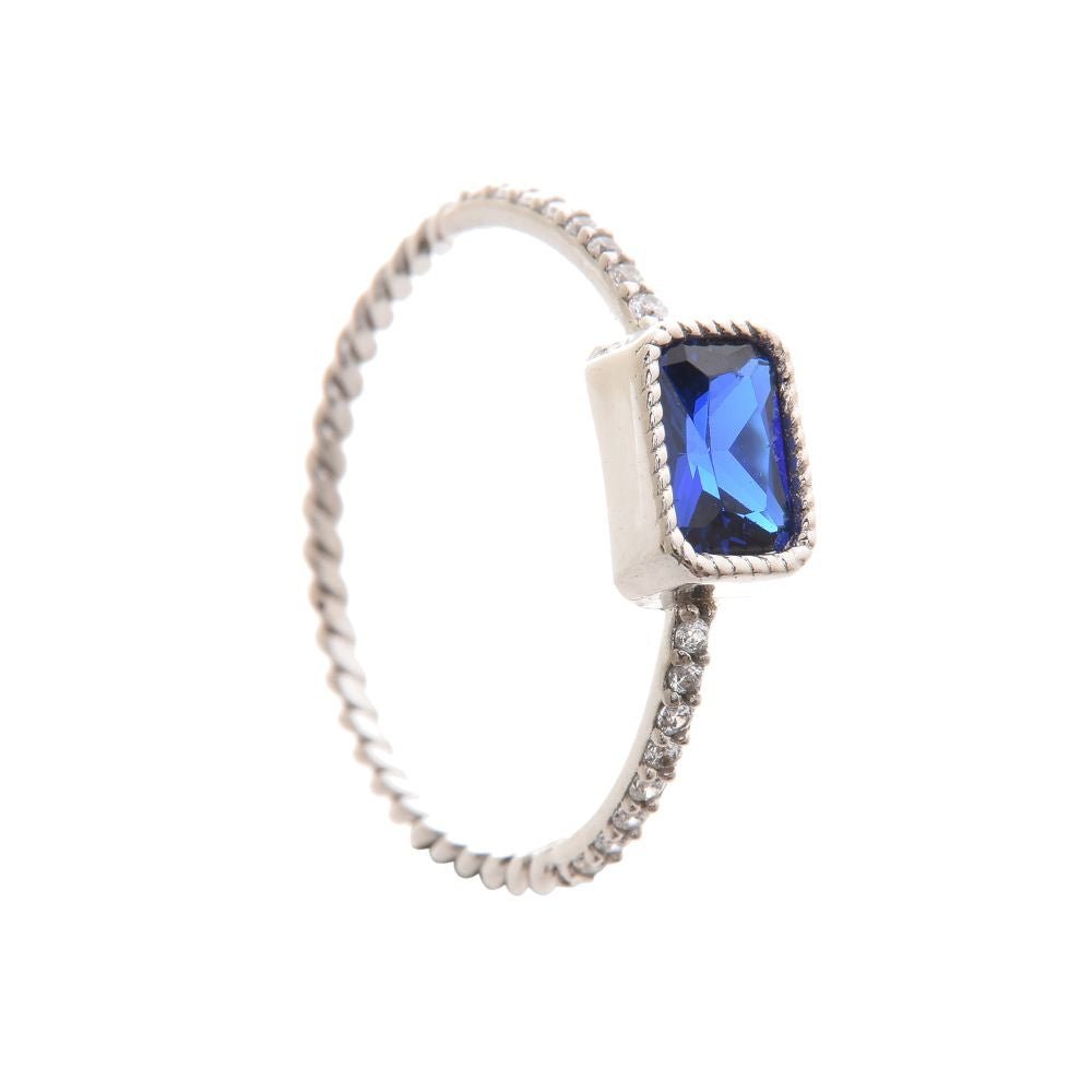 Silver material with white and blue zirconia stone